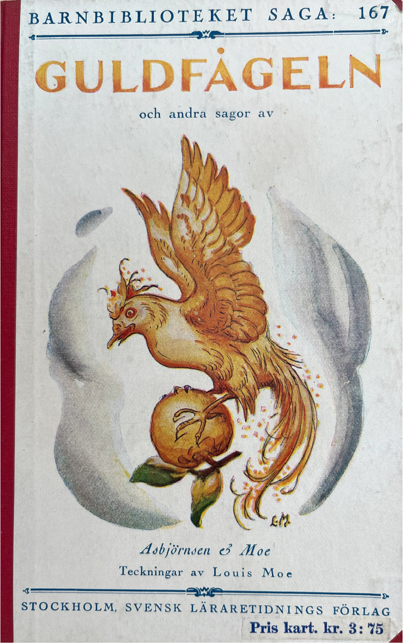 Bild 3. Omslaget till Peter Christen Asbjørnsen och Jørgen Moes Guldfågeln och andra sagor (1942, 2 uppl.). Illustration av Louis Moe.