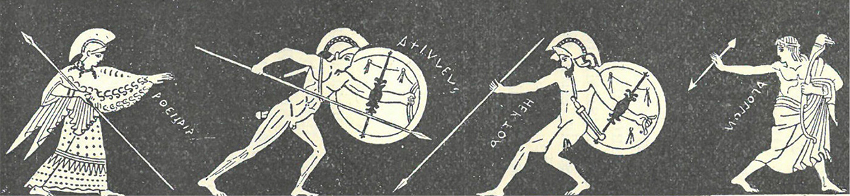 Bild 1. Akilles och Hektors sista strid. Ur Kata Dalströms Grekiska guda- och hjältesagor, s. 323.