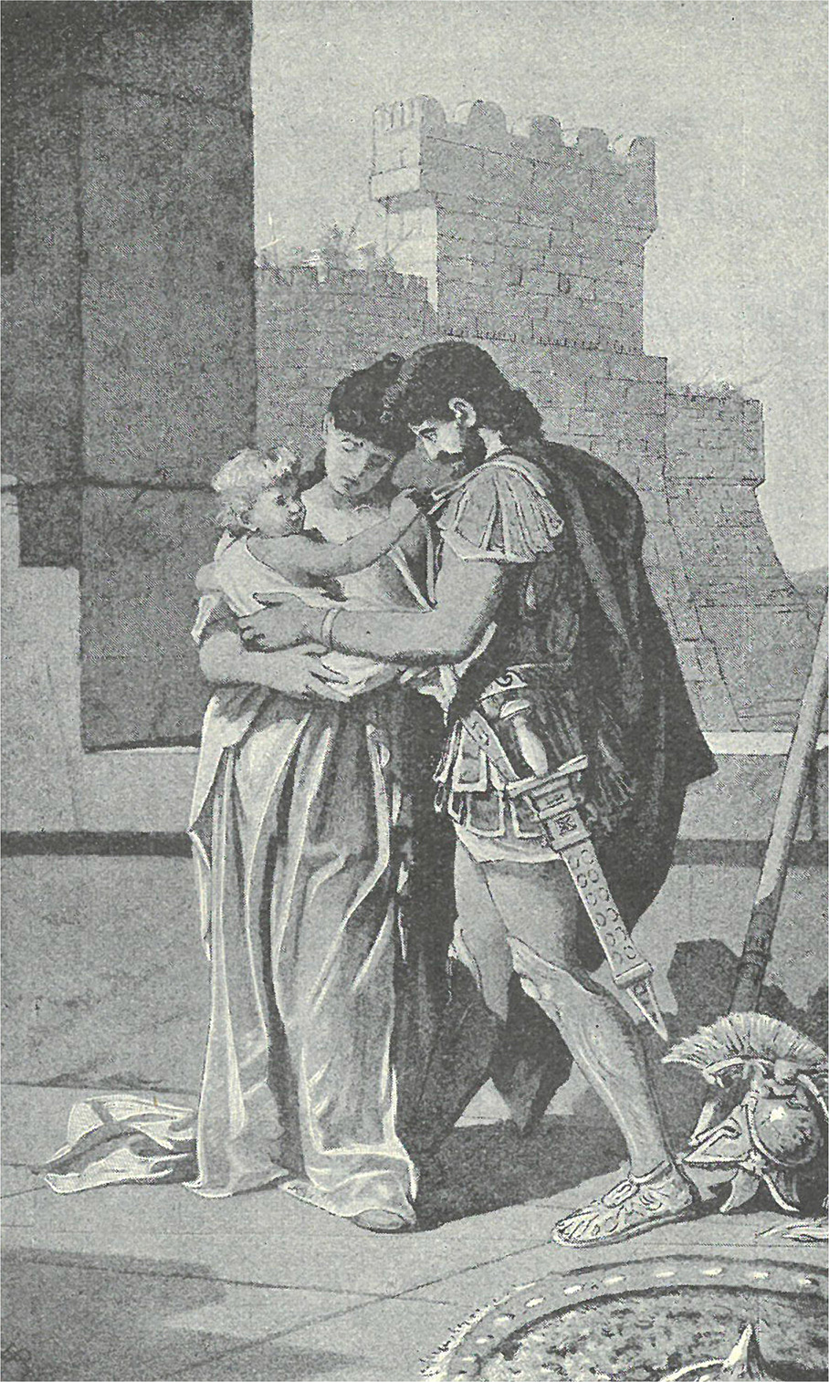 Bild 2. Hektors och Andromaches avsked. Ur Kata Dalströms Grekiska guda- och hjältesagor, s. 248.