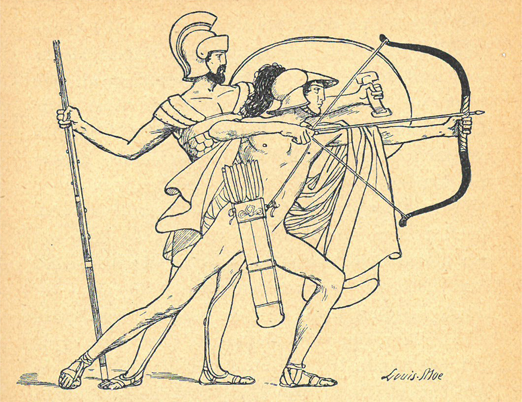 Bild 6. Bågskytten Tevkros. Ur Fridtjuv Bergs Trojanska kriget, s. 149.
