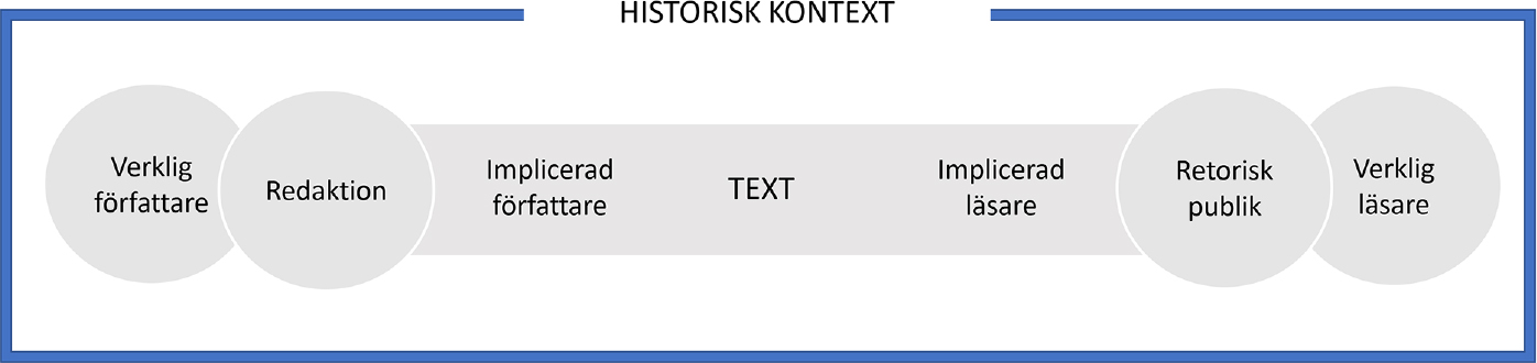 Detsamma gäller för den andra änden av kommunikationskedjan. I stället för att bredda betydelsen av den implicerade läsarinstansen har jag valt att införa den retoriska publiken som ytterligare en instans. Enligt Chatman är både den implicerade författaren och den implicerade läsaren textuella funktioner (31). På motsvarande sätt menar Wolfgang Iser att den implicerade läsaren är en responsförberedande textstruktur som understödjer läsarens förståelse av texten (34). Men där klassiska teoretiker som Chatman och Iser fäster avseende vid textens struktur, samt den läsare som impliceras av och är immanent i denna struktur, intresserar sig postklassisk och retorisk litteraturteori för de föreställningar som är närvarande när författaren riktar sig till en specifik retorisk publik (Phelan, Somebody Telling 6, 13; Cadden 15). Den retoriska publiken får betydelse i samspelet mellan texten och den historiska kontextens tidsbundna föreställningar om exempelvis pedagogik, psykologi och barnlitteratur. Lika viktigt är att den retoriska publiken är en instans i kommunikationsmodellen som fångar vad författaren och/eller redaktionen vill att texten ska göra med läsaren.