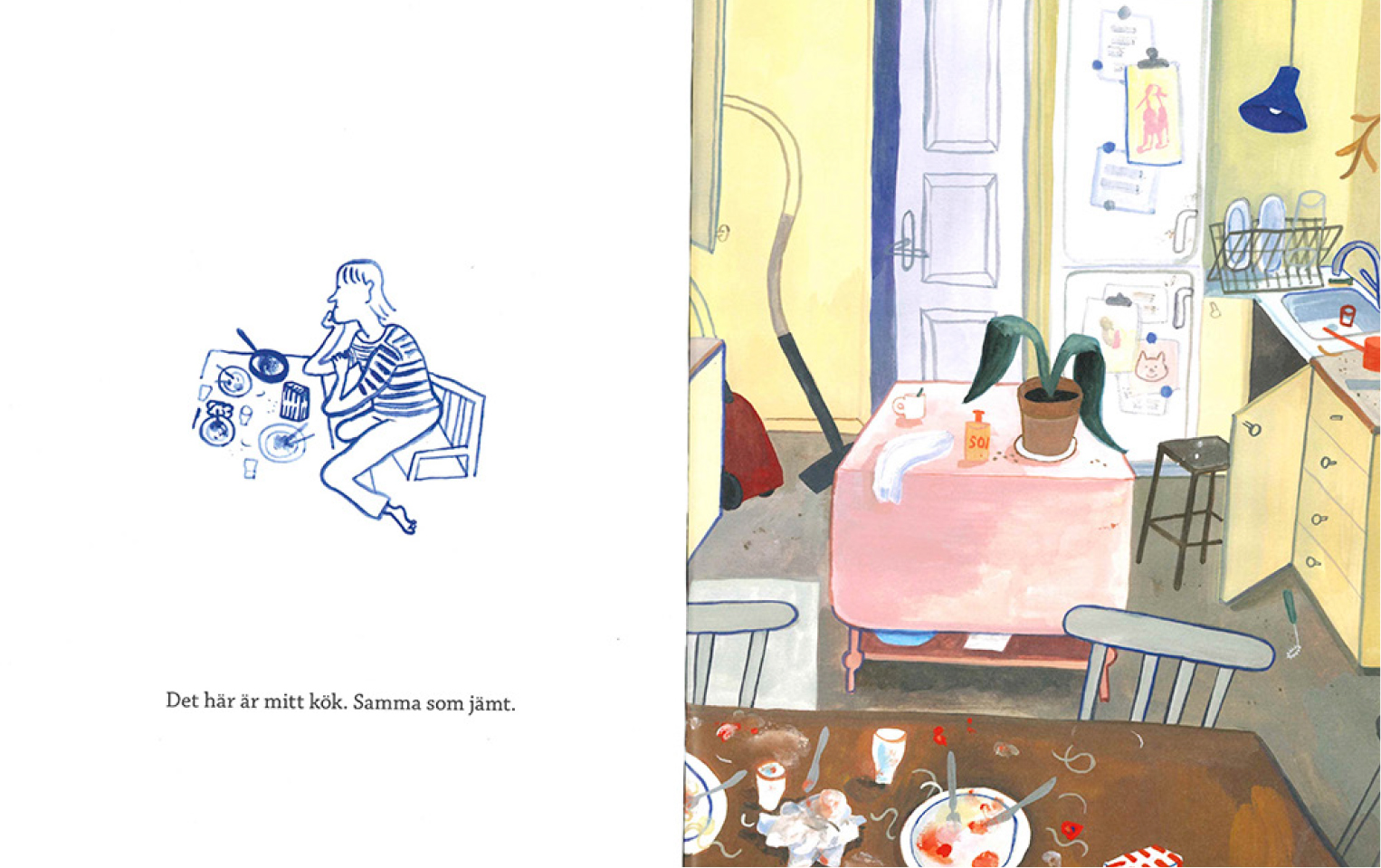 Image 4. The kitchen in the mother’s imaginary world. From Samtidigt i min låtsasvärld (2018) by Lisa Bjärbo and Emma AdBåge. © Lisa Bjärbo and Emma AdBåge.